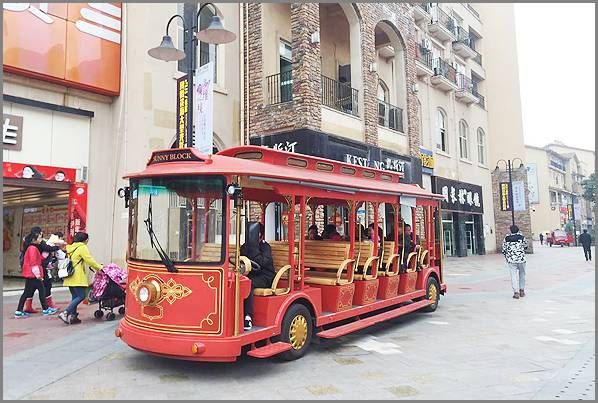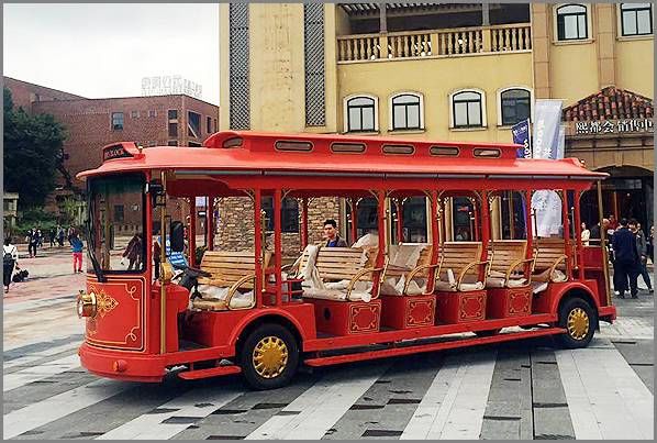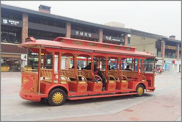 益高EG23座仿古豪华观光车(出口型)是本公司专为旅游景区、公园、大型游乐场、封闭小区、校园、花园式酒店、度假村、别墅区、城市步行街、机场、港口、码头等开发的乘用车辆。整车性能优良、设计人性、配置高(车架运用航空合金材料,防腐牢固),外观设计新颖、内饰精致、乘坐舒适安全,是目前国内理想的电动旅游观光车.