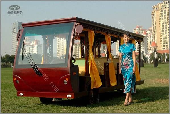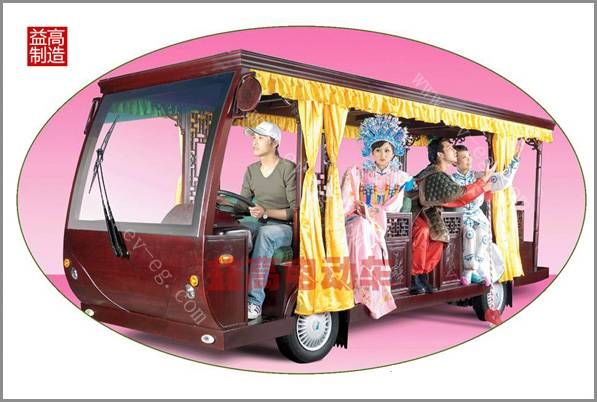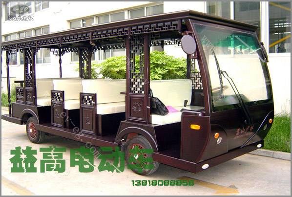适用于旅游景区、公园、大型游乐场、封闭小区、花园式酒店、度假村、别墅区、城市步行街、机场、等开发的环保型乘用车辆。该车现以用于北京故宫博物馆,少林寺,曲阜孔庙等景区,以接待中外来宾。益高电动仿古车是一种艺术品!