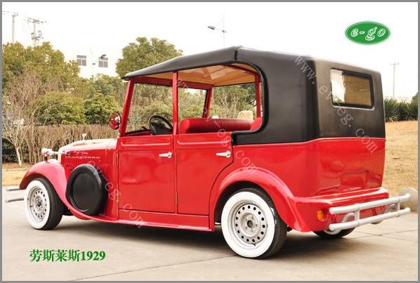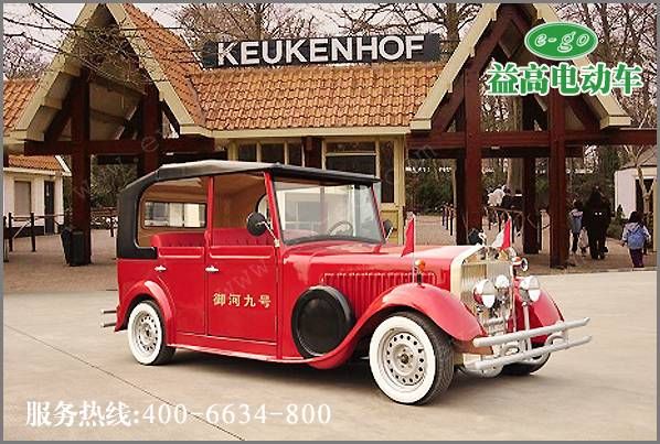 益高六座半封闭(可选择不装车门)老爷车,传承轿车理念,外观大气,是一款是专门为大型房产公司、酒店、大型物业、大型游乐场、校园、度假村、别墅区、婚庆公司等开发的乘用车辆。整车性能稳定、外观别致优雅、内饰精致,加半封闭后乘坐舒适安全,益高电动车被酒店和房产选用,如:上海虹桥大酒店、郑州中原福塔、万科地产、华强集团、绿地地产(株洲、郑州、青岛、烟台等方特梦幻王国娱乐城)等重点单位使用并形成了长期的合作关系。