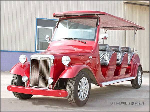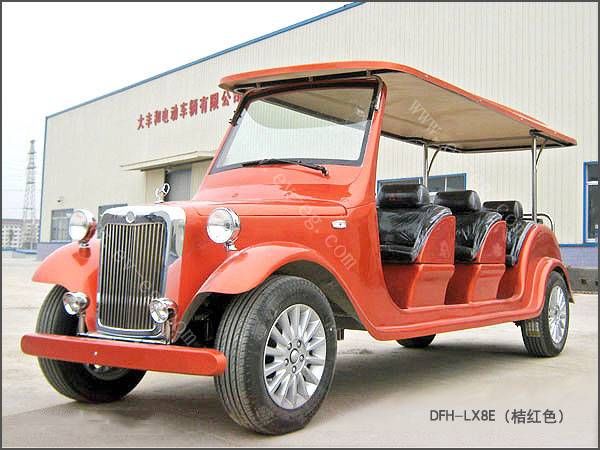 这款电动老爷车,采用电瓶作为动力,是当前许多旅游景点采用的代步及观光交通工具。我公司拥有完备的技术支持和售后服务,集销售与售后服务为一体,专注于公司的长期的发展,产品外形美观、小型轻便、高性价比、质量优良. 如果您要购买电动老爷车、巡逻车、观光车等,请与大丰和电动车辆有限公司销售部联系。本车车身有多种颜色可选择(夏利红、白色、宝蓝、黑色、金黄色、桔红色、咖啡色、玫瑰金、夏利红镶金边)。