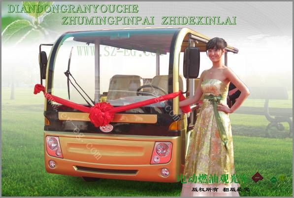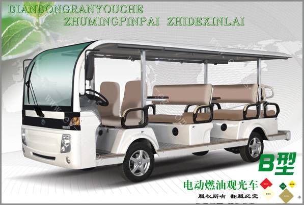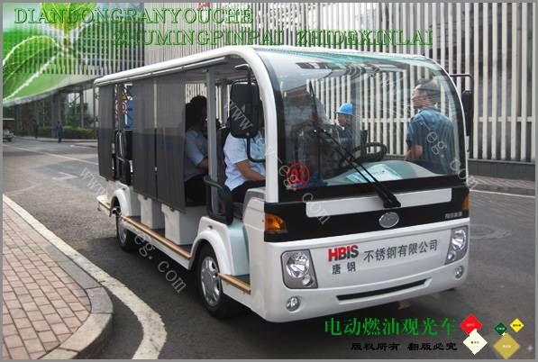 2、散热性好,长时间低速爬坡发动机不会过热。大尺寸全铝散热器迎风面积大、散热效果好,可确保观光车长时间低档低速,重载爬坡时发动机不会过热,解决其它品牌燃油观光车爬坡发动机过热问题。