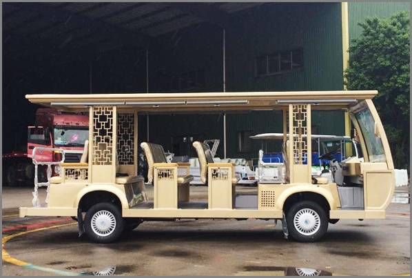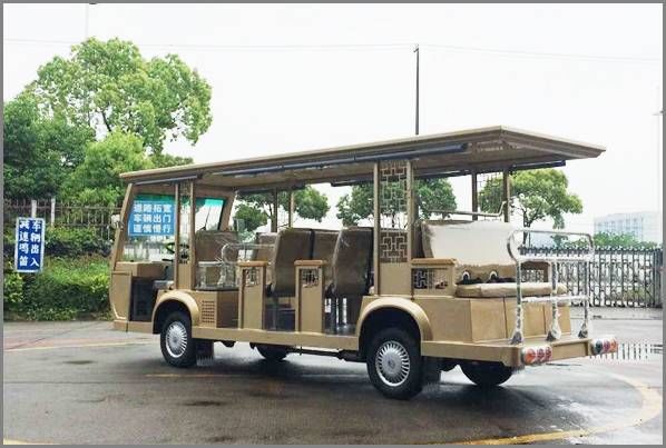 4、益高汽油旅游观光车 涂装工艺:大巴车涂装工艺,体式承重梁底盘,整车酸洗,磷化处理,喷塑防腐车架。