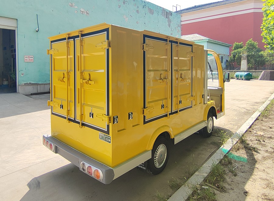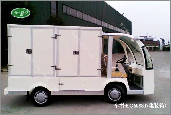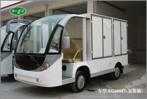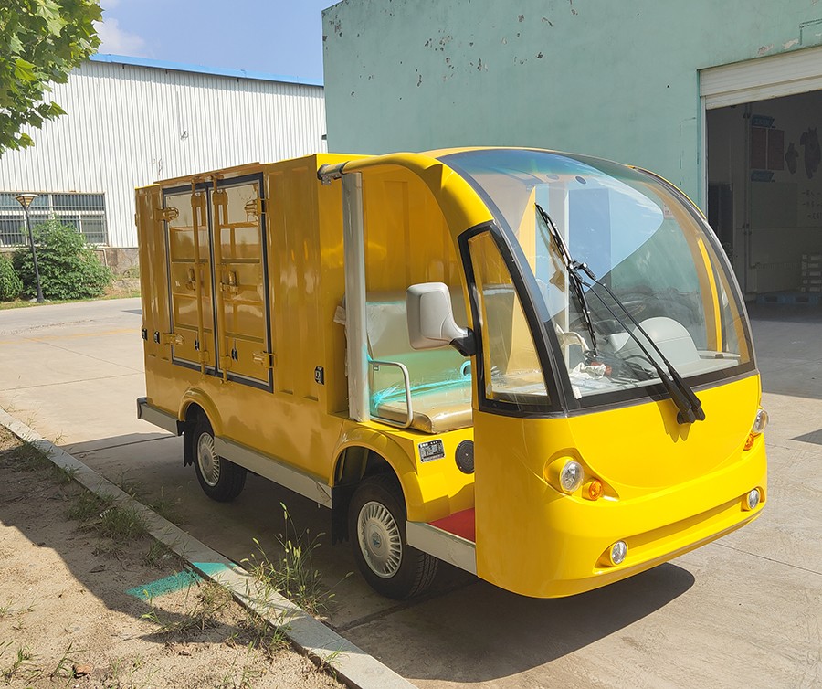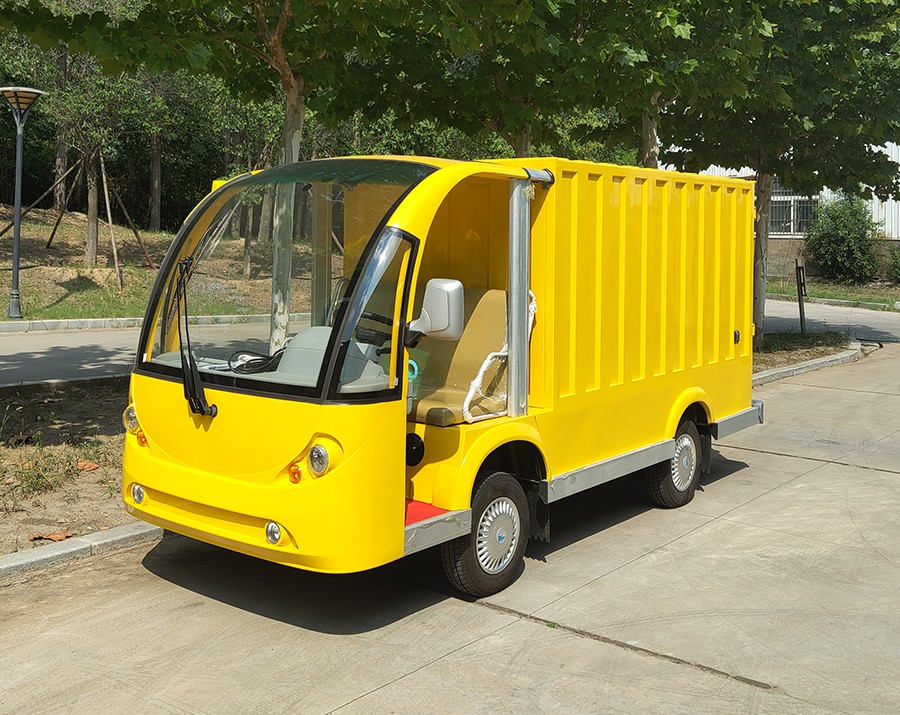 “新瑞电动厢货车”-是益高设计师在益高第八代新瑞车型的基础上,专为大型企业、事业单位、地铁海关、医院物资、学校港口、酒店等作为内部物资货物运输等精心设计的,整体设计达到了司机操控舒适化、内部荀淑便捷化、车辆设计人性化、内部核心配置高等特点,益高电动厢货车是益高的四大系列(高尔夫系列、观光车系列、电动巡逻车、工程车系列)车型之,是续福瑞、祥瑞、吉瑞系列之后在09年推出的车型新品,外观设计新颖、内饰精致、乘坐舒适安全,是目前理想的电动送餐车。