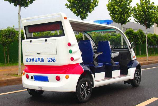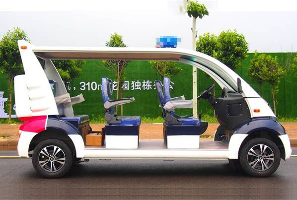 此款六座电动巡逻车是种为治安,维和人员专门设计开发的车。该车是特别适用于执勤巡逻、步行街、高尔夫球场、旅游景点、房地产(园林小区)、各大型企业、单位、公园、娱乐场所、体育场馆、大专院校、医院、疗养院、车站、机场、码头等域的交通工具。电动巡逻车安装配备有警示灯、鸣笛和喊话装置。其中有:半封闭、全封闭两种类型。